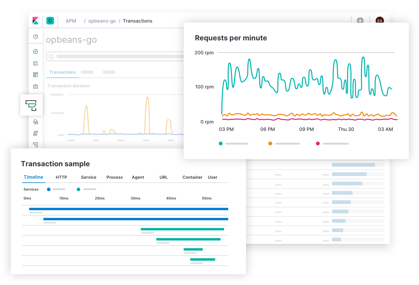 trasc-id、span-id、parent-id,來實現分散式追縱的功能,讓我們能透過 Kibana 能輕易的觀察一個橫跨多個服務的請求,過程中哪個環節的執行效能較慢、或是在發生錯誤時能快速的查看歷程中發生什麼樣的事。真實使用者監控 (Real User Monitoring):讓我們透過 Elastic's RUM Agent 收集前端使用者在 web 上的操作,幫助我們從真實的使用者情境,並且關注在使用者體驗來分析效能狀況、進行效能最佳化、或是更即時的發現系統存在的問題。