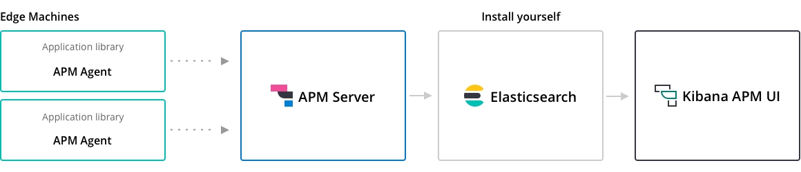 Elasticsearch 是架構中的元件,就像是資料庫一樣,不適合直接讓外部存取,APM Server 的存在,避免讓 APM Agents 直接存取到 Elasticsearch,因為有些 APM Agents 例如:RUM (Real User Monitoring) 是以 Javascript 的方式在 Browser 端執行,也就是在一般用戶端執行,若是直接存取 Elasticsearch 會有安全性上的疑慮。