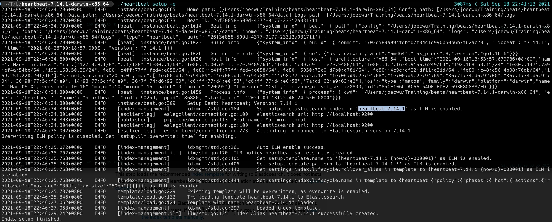 ./heartbeat setup -e幫我們到 Elasticsearch 建立好 ILM (Index Lifecycle Management) 要使用的 Index Template。