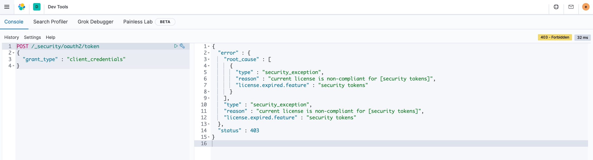 這兩種或是以上的授權等級,才能使用這項服務,如果是自架的 Basic License ,在使用 get token API 時,會得到以下的錯誤訊息: