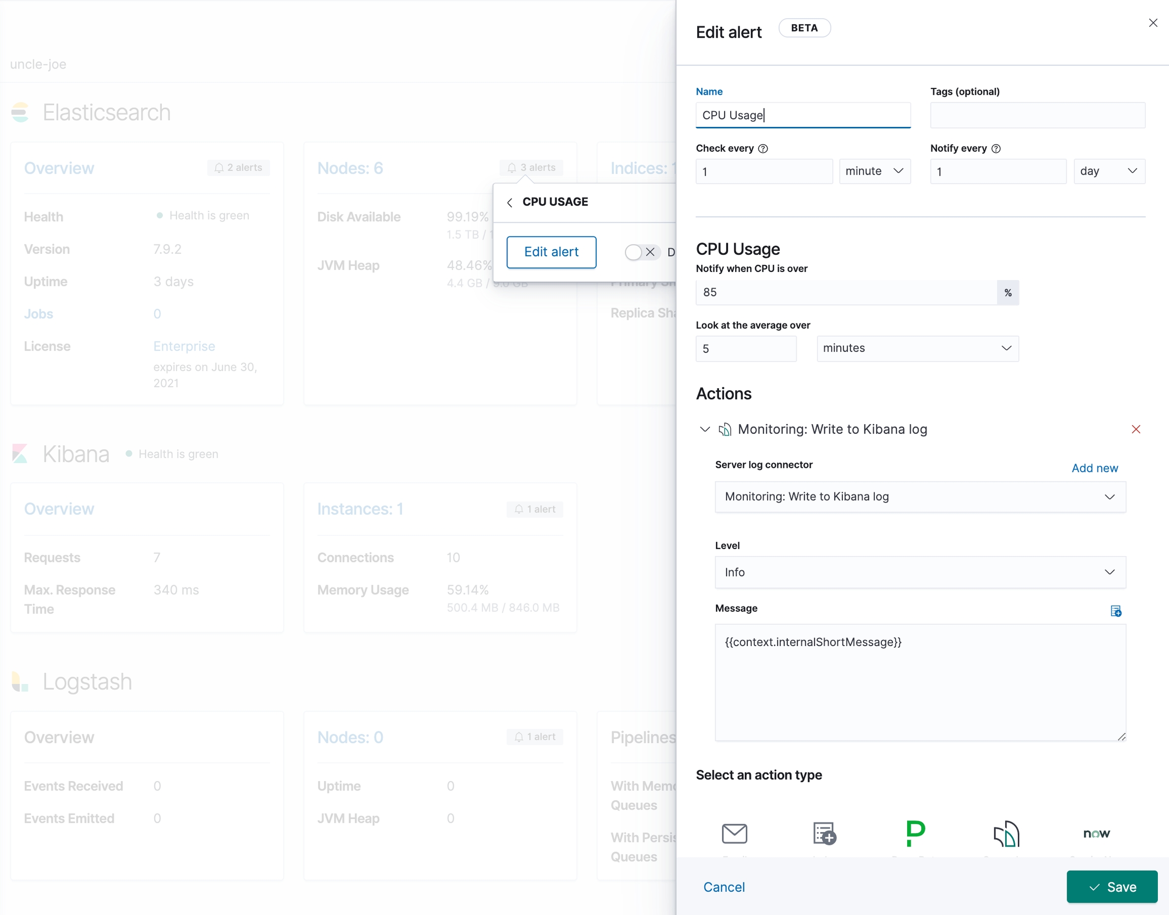 在 Elastic Stack 中,這個 Automatic stack issue alerts 有預先針對 Elastic Stack 定義好一些通知的 alerts 機制,我們進入 setup mode 去修改相關的設定。