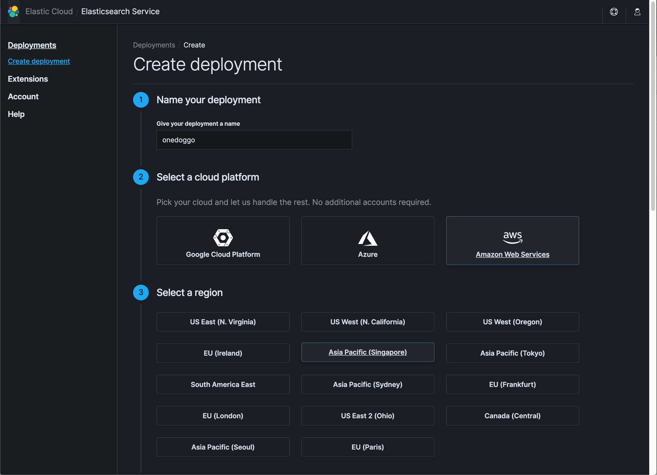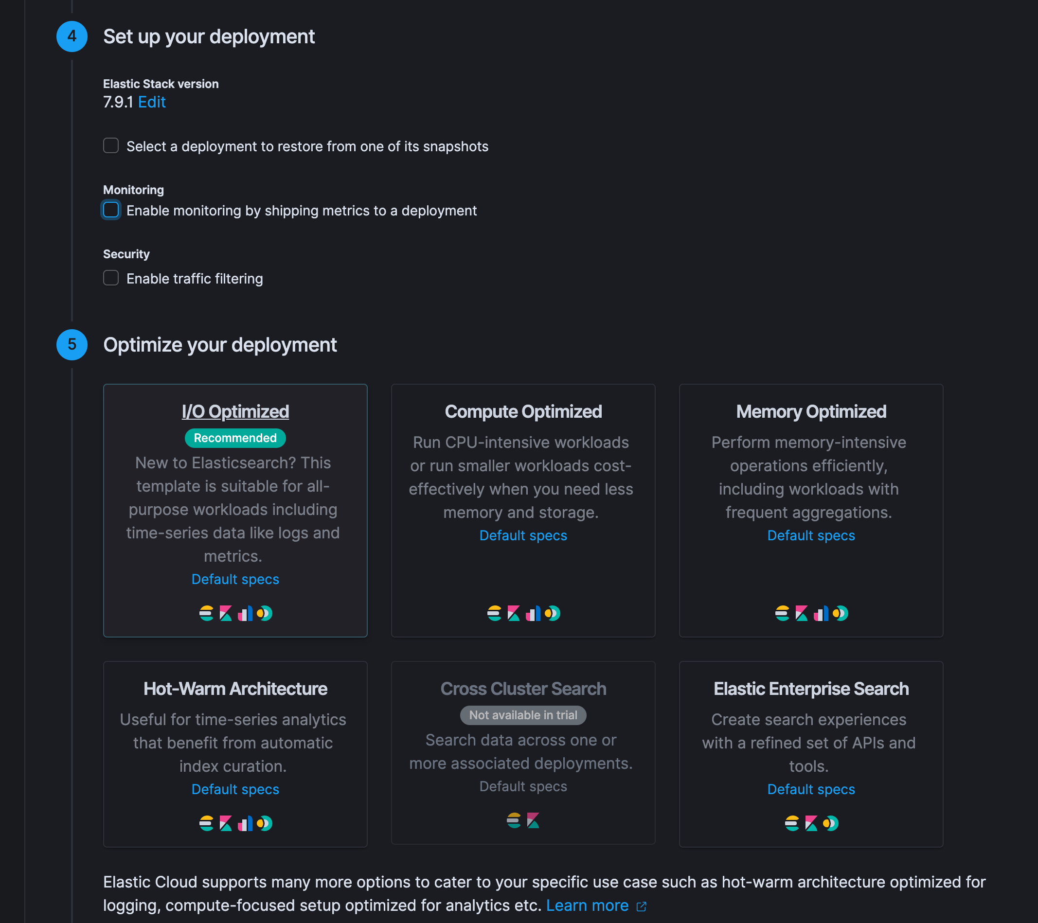 建立 Elastic Cloud (EC) Deployment 時的選擇