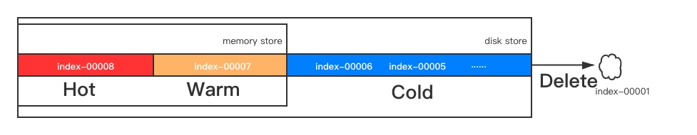上圖可以解釋當資料隨著時間變化,會不斷產新的 Index,並且隨著時間變化 (流水號數字愈大的是愈新的,數字愈小是時間愈久),會逐漸移到下一個階段中。