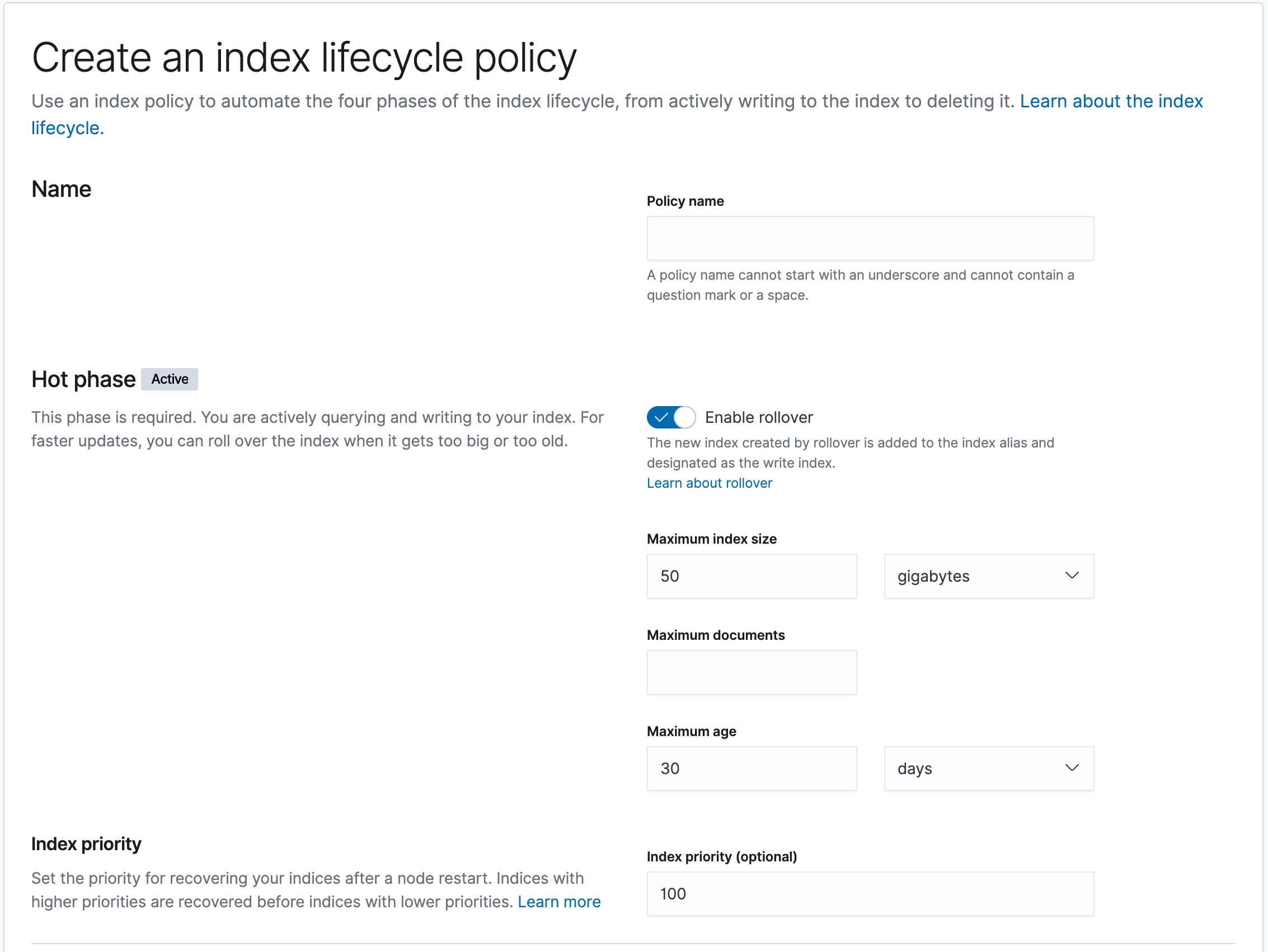 Index Lifecycle Management 顧名思意,就是用來管理 Index 的生命週期,而在 Elasticsearch Index 生命週期主要定義有四個段。