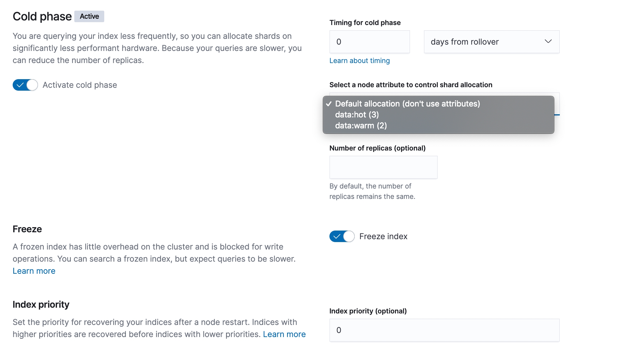 在 Warm Phase 中,可以指定當 Hot Phase 中的 Index 發生 Rollover 時,是否直接把 Index 移到 Warm Phase 的階段。