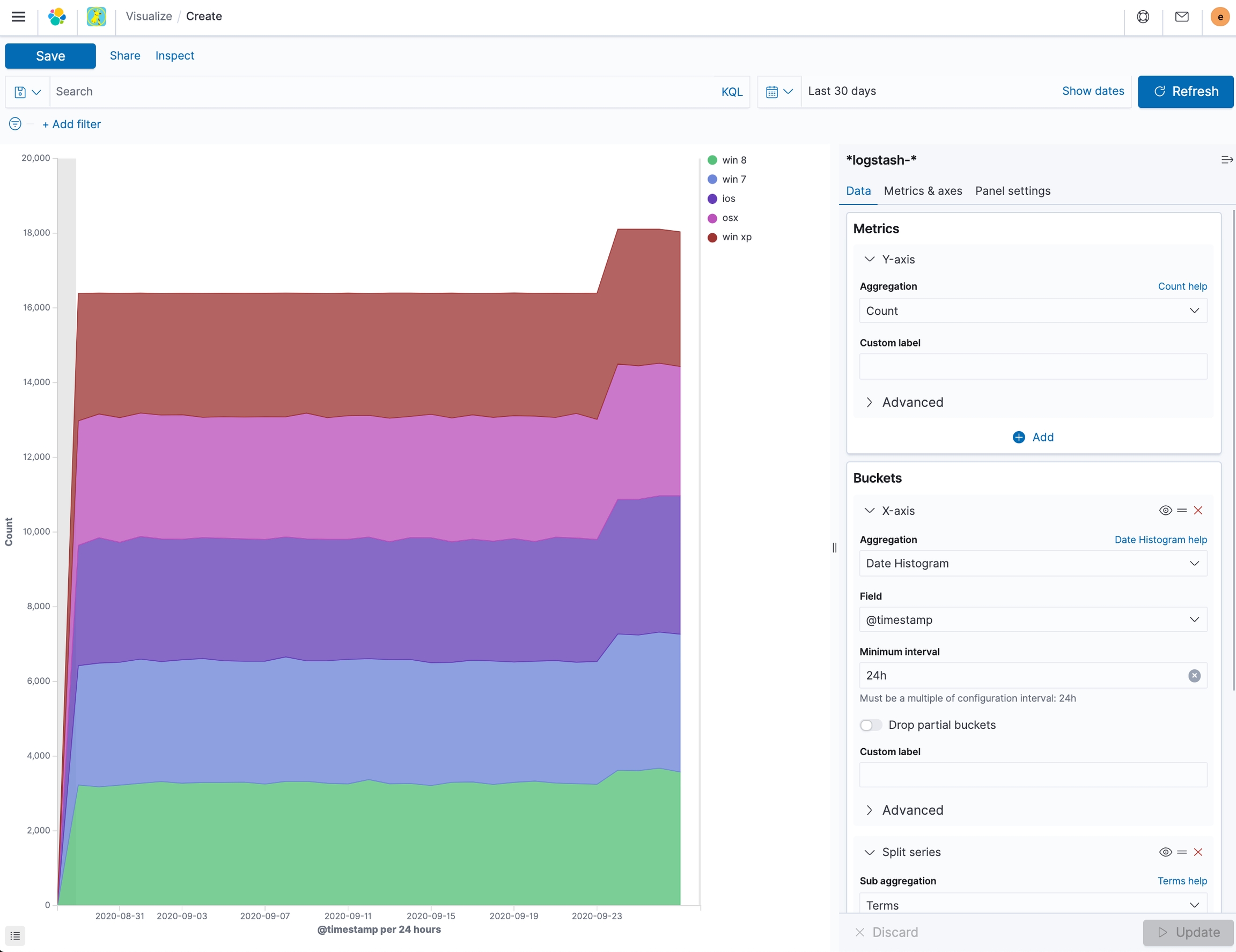 接下來要分別設定 Date histogram 的時間顆粒度: