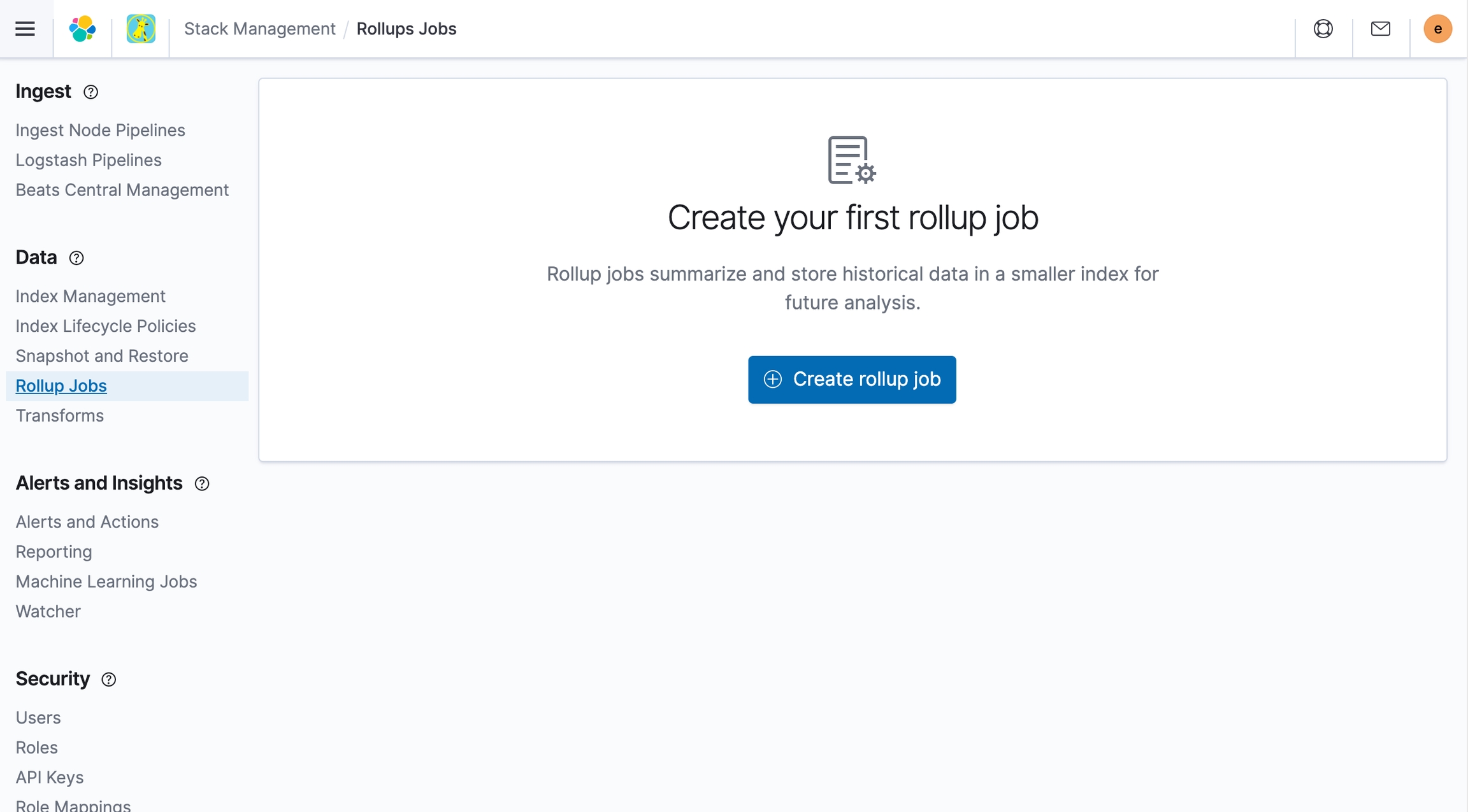 首先,進入 Kibana > Stack Management 後,點選左側 Data 區塊中的 Rollup Jobs。