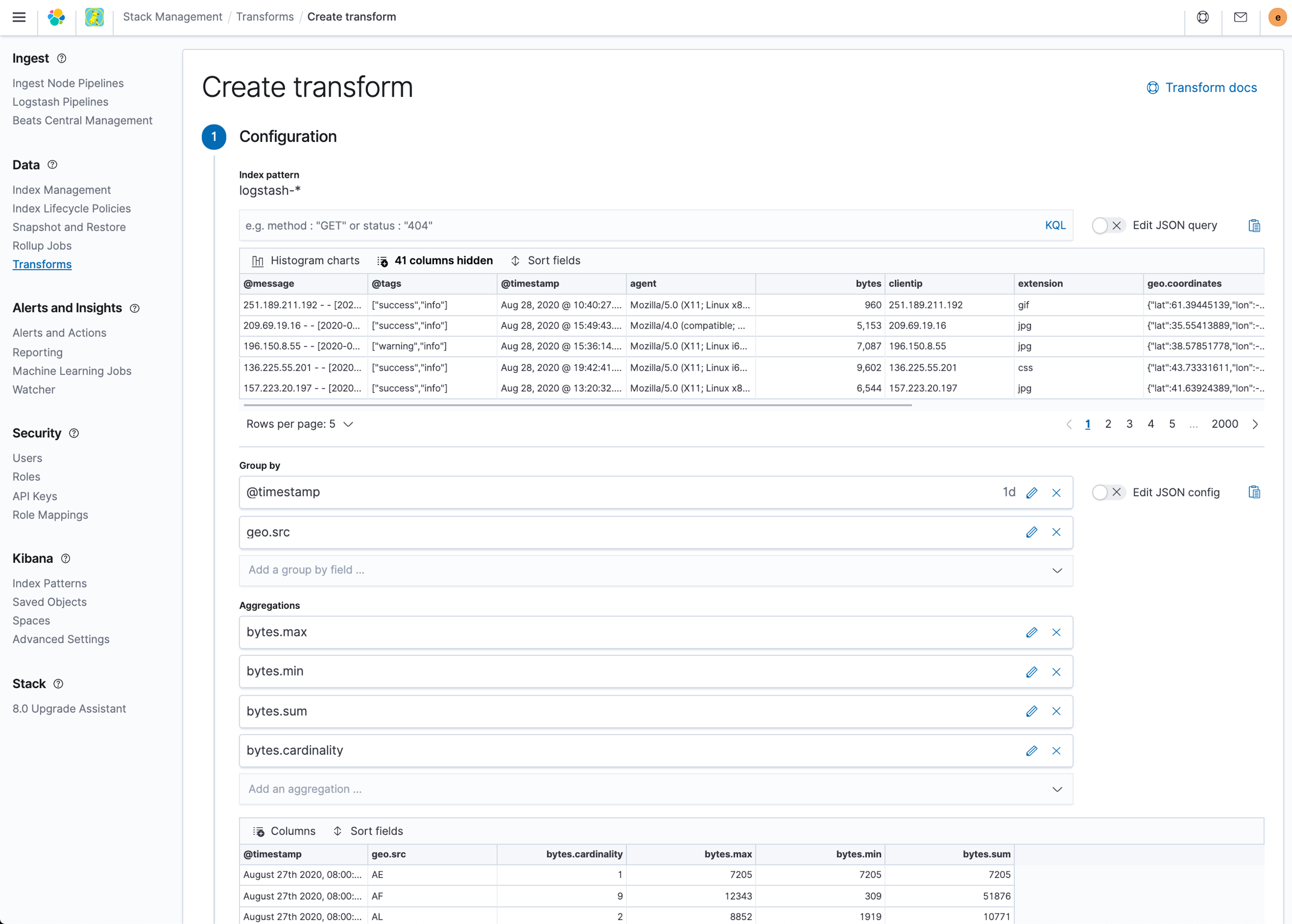 如何在 Kibana 上建立 Transform 並使用他的結果。