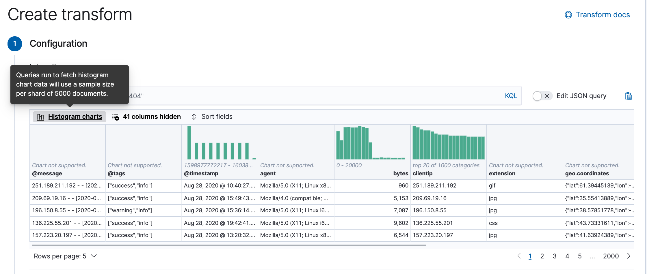 Transform 使用的是 Composite Aggregation ,因此在 Buckets 的數量限制上、及 terms query 的