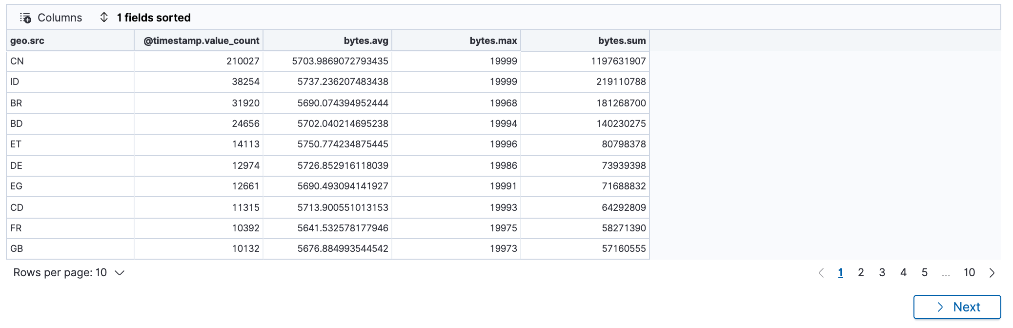 在選擇好欄位後,底下會可以預覽這個 Transform 的 Aggregation 查詢的結果。