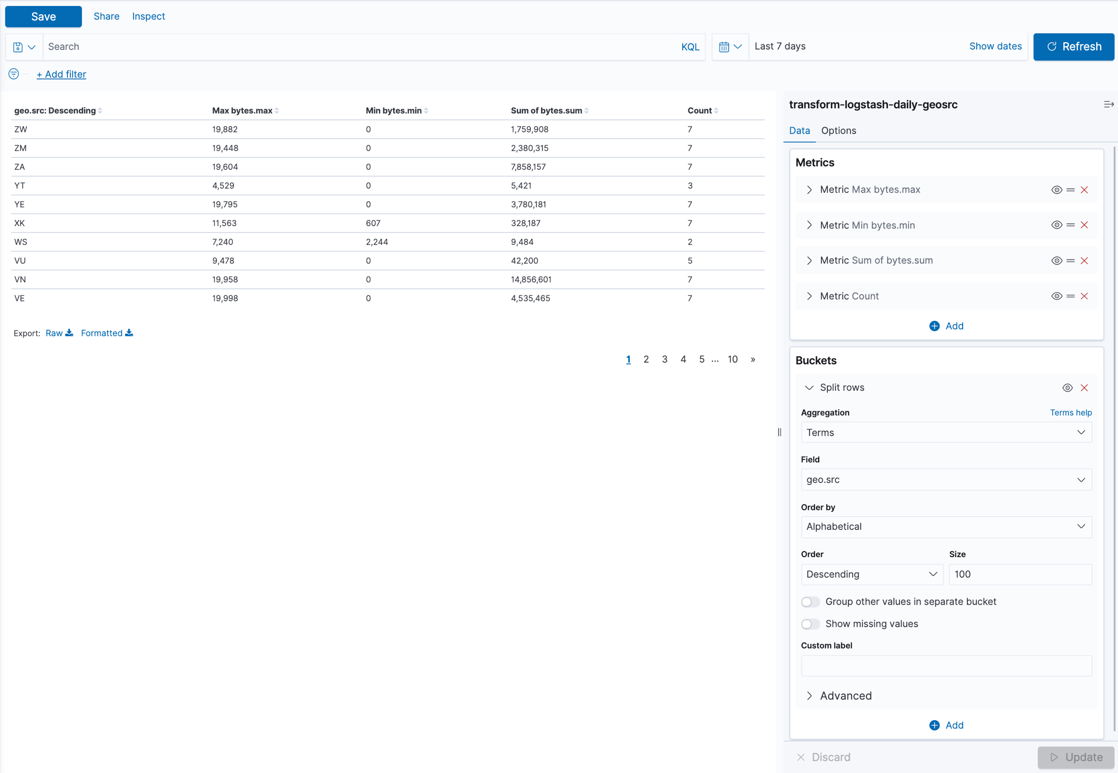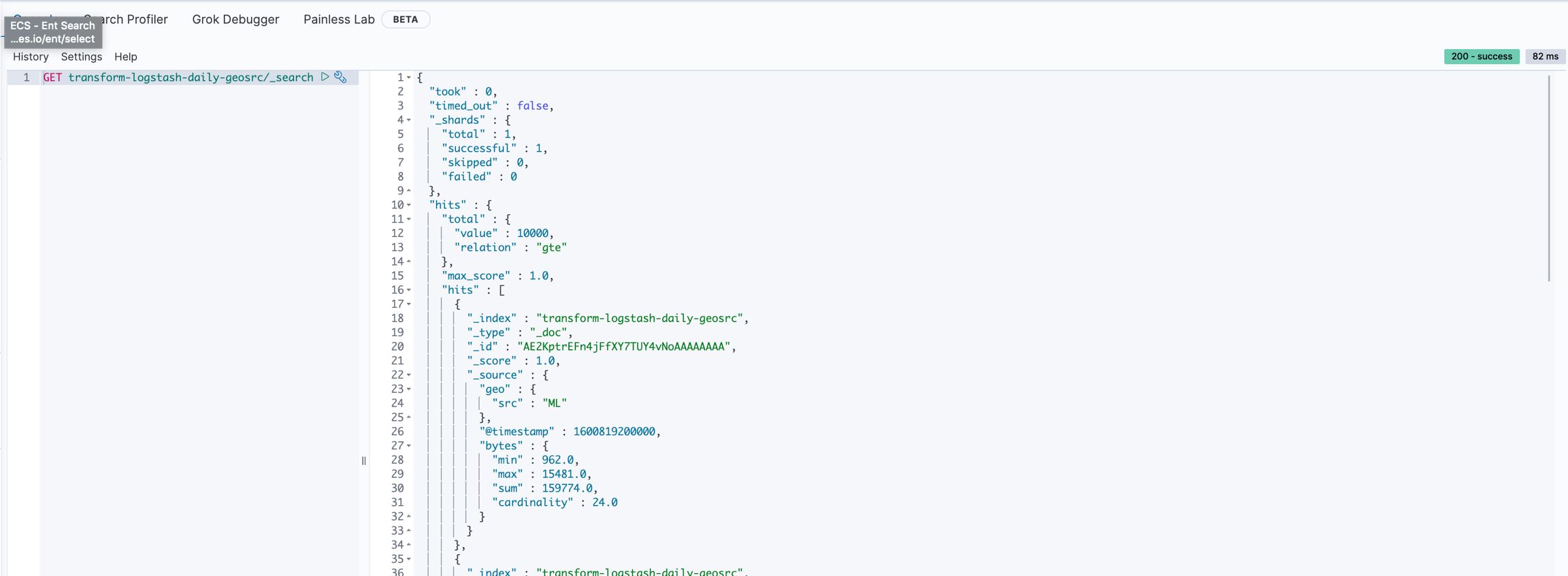 執行後,可以到 Transforms 頁面看建立的 Transform Job,或是到 Discover 查詢 Tranform 出來的資料內容。