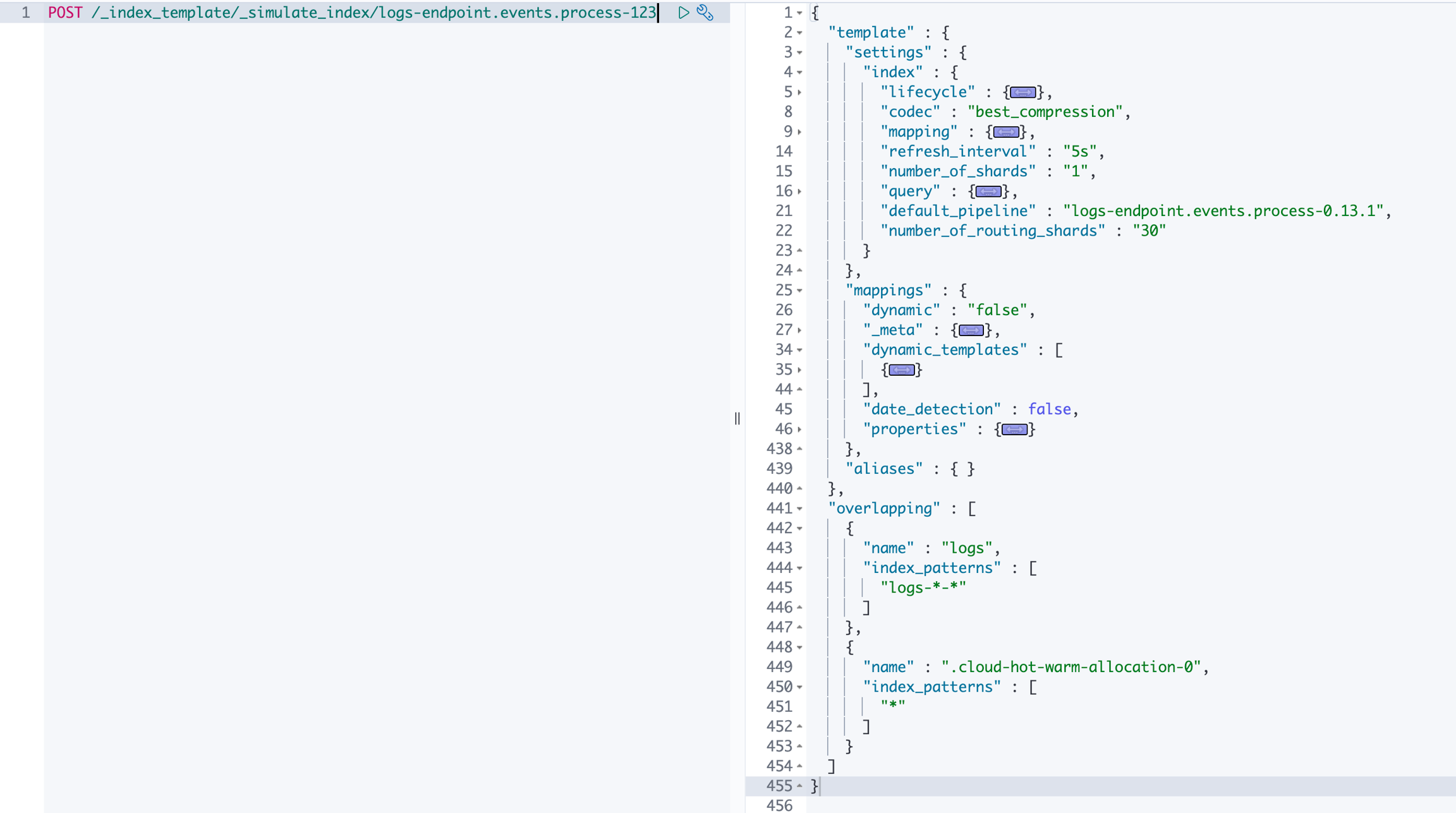Simulate Index用途:當有個指定名字的 Index 要產生時,最終他被套用的 Template 結果為何,以及是否有其他因同規則發生重疊的 Template。
