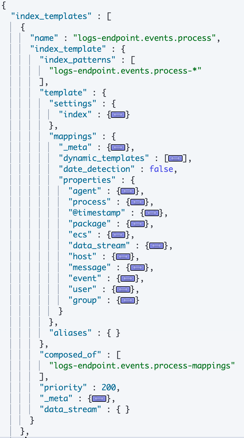 index_pattern可以發現,他也符合logs-*-*的格式,但他更針對某一子集來設置logs-endpoint.events.process-*他的 priority 設置到更高的