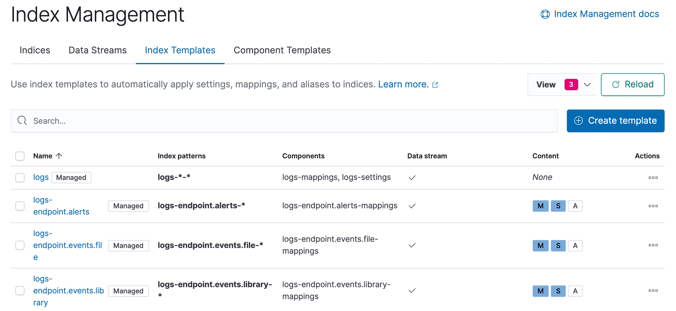 再來進入的是 Index templates,這部份就是我們先前介紹的東西,透過 Kibana GUI 的畫面來進行管理。