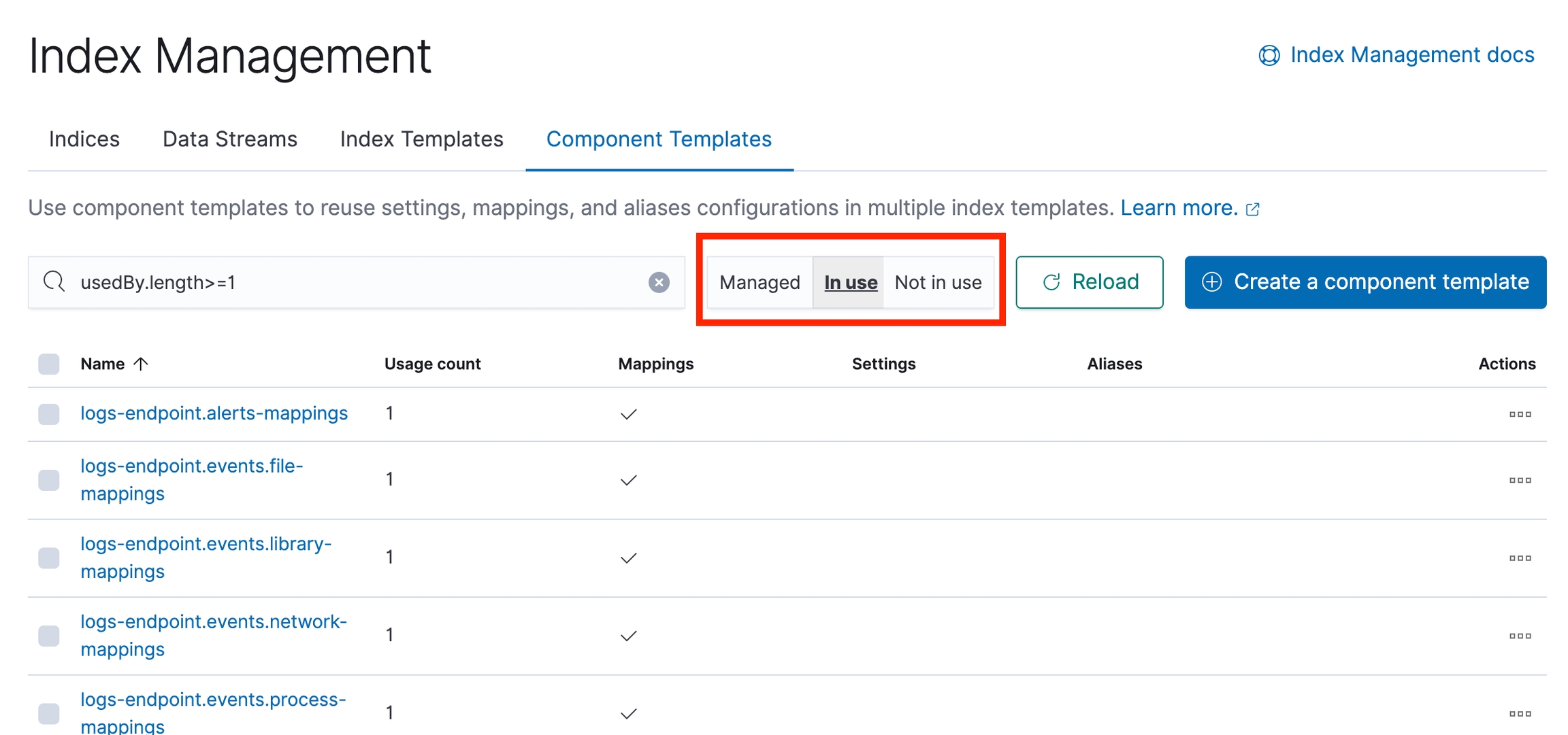 這部份和 Index Template 差別不大,建立、設定的畫面都差不多,主要是可以針對 In use