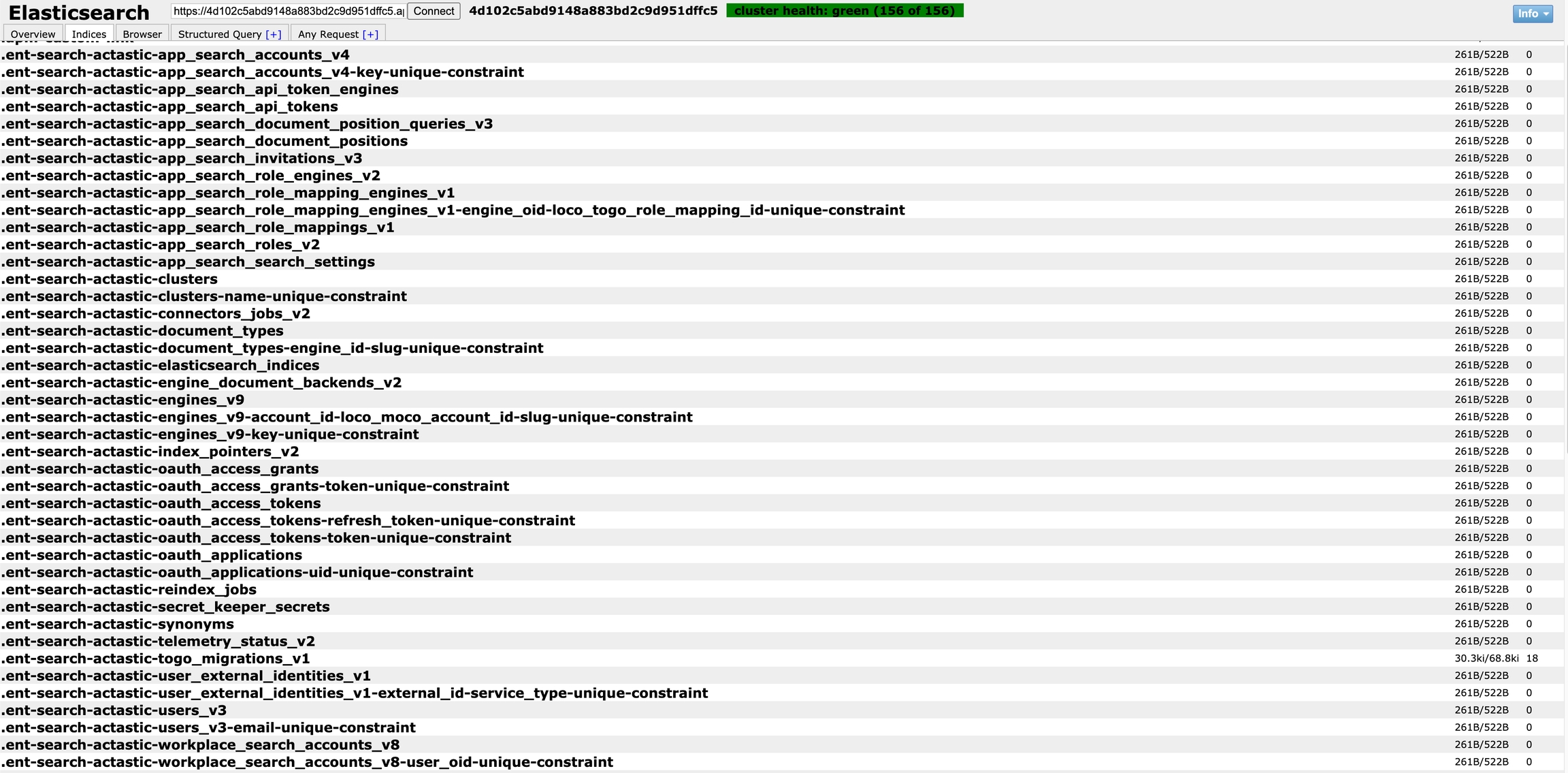 建立完成後,我們查詢 .ent-search-actastic-engines_v9